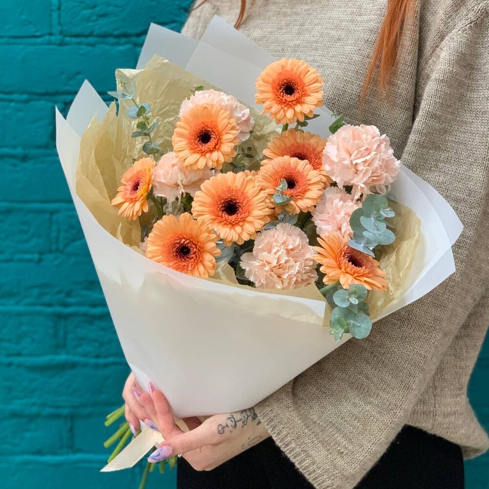 Букет из герберы и гвоздики (диантусов)